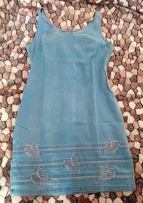 Сарафан из тонкого, мягкого катона высокого качества. Элегантно украшена прошвой и декором по низу. Имеет регулируя пасок и молнию сбоку длина по спинке 78,5 см ширина под груди 47см нот в спокойном состоянии 40см