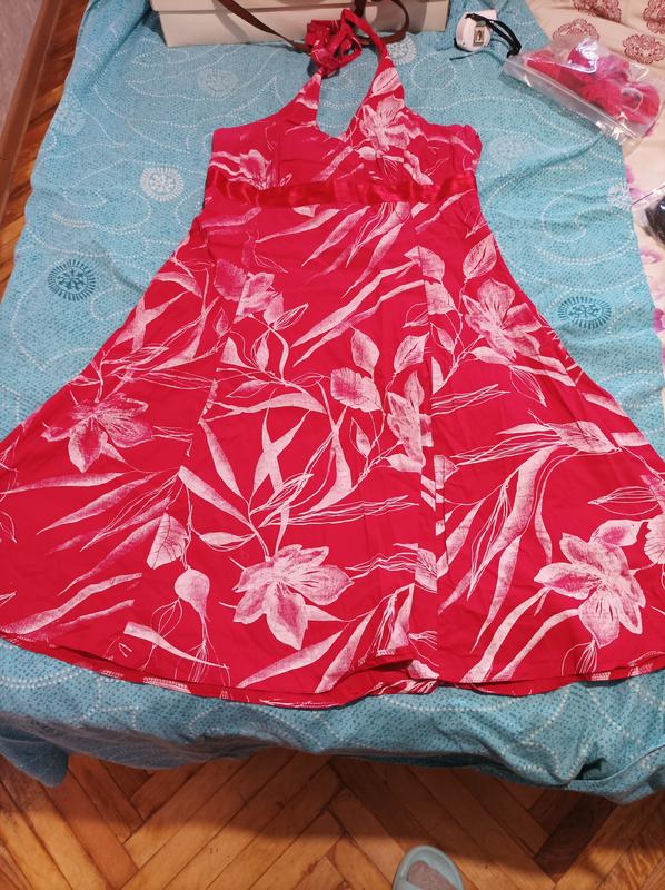 Продаю свои вещи. Прекрасний сарафан, клеш. Приятный к телу, яркий. Есть следы носки под подмышками и небольшое пятно. В носке не заметно. Залюбки дам ответ на все вопросы, сделай замеры и дополнительные фото по прошению