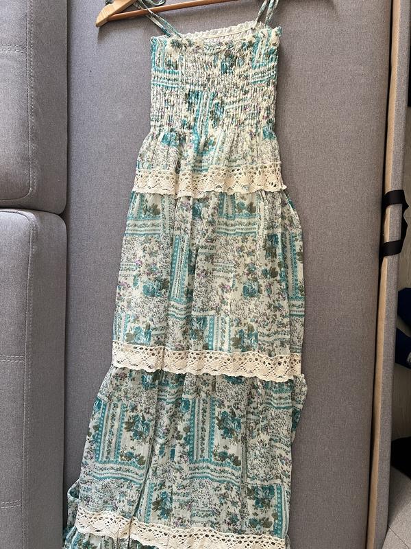 Легкий сарафан в цветочный принт. Бретели регулируются. Замеры на дополнительных фото. Верх на резинке, тянется