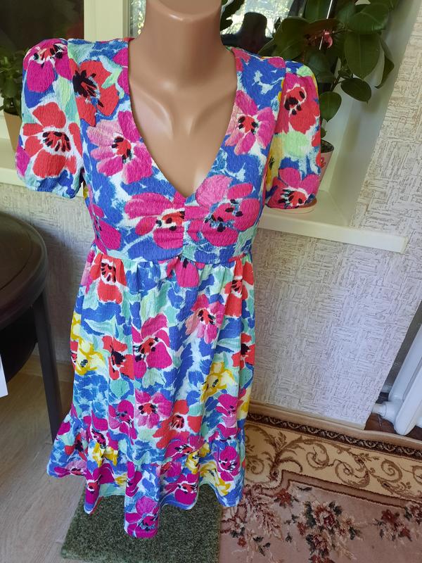 Продам летнее яркое платье Primark. Вавна 100%, жатка, как марлевка.Не требуэ гладит,легкая, яркая.Размир 34,36., под грудью резинка,хорошо тянется.У плечах 34,длина,88.Низ -оборка.