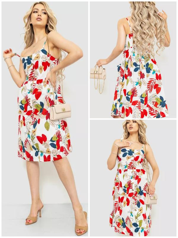 Женский сарафан с цветочным принтом, цвет молочный. Размерная сетка на последнем фото.