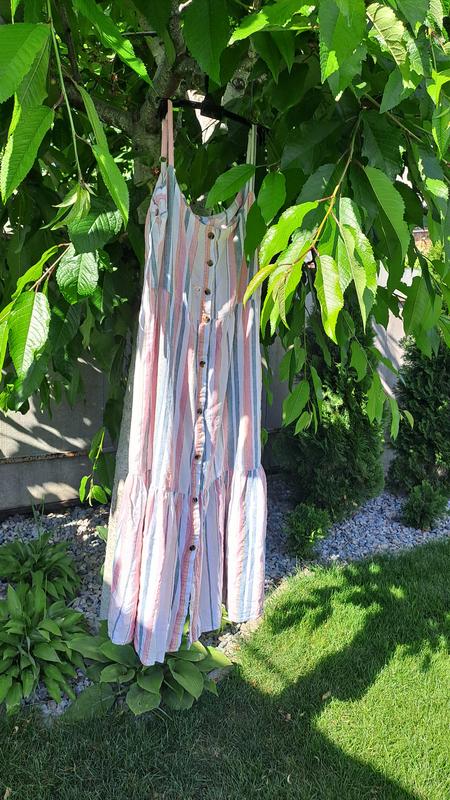 сарафан длинный 105 см он начало лямок ,там где они пришить, лямки регулируется, размер указан 12 пог 50 поб 45, натуральная ткань, состав на фото, без дефектов, стало маленькое в груди, 200грн