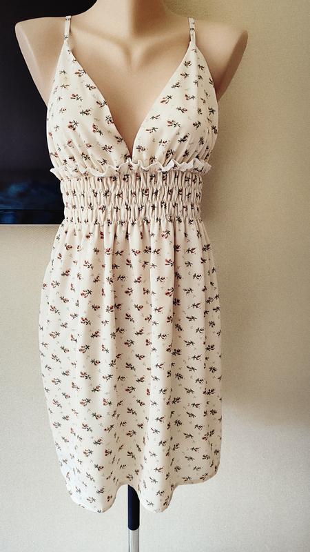 Бежевый сарафан на подкладке в цветочный принт