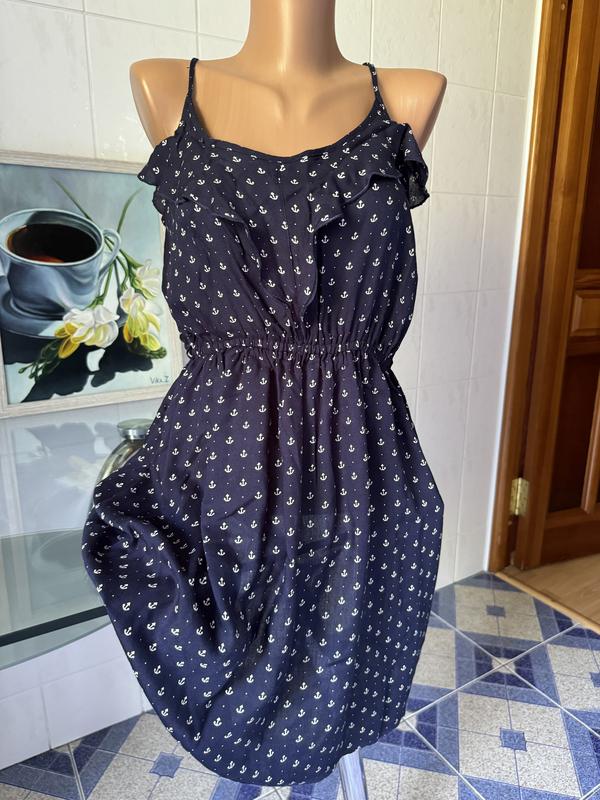 Сарафан темно - синього кольору, з натуральної тканини. (штапель) Плечі і спина відкриті. На жарке літо ідеальний варіант. НОТ - 35см (тягнеться до 48см) Обьєм грудей 85 - 90см Довжина від лінії талії - 48 см. Довжина від лінії плеча - 83 см В наявності багато речей за приємними цінами😉