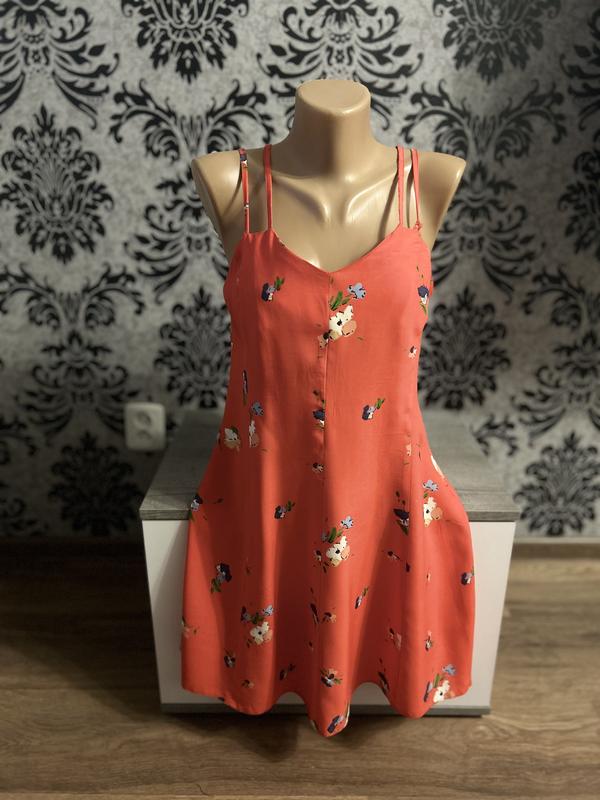 Сарафан приталенный, ткань легкая и приятная на ощупь, 100% вискоза, не тянется, молния сбоку, красивые не регулируемые лямки есть один дефект на шлейке, можно быстро исправить. Длина 86см, ПОГ 45см, ПОТ 42см, ПОС 60см.