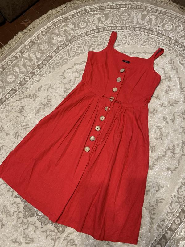 Льняной сарафан Boho, 38 размер. Очень яркого красного цвета (твердый красный как говорят стилисты) нюансов и следов ношения нет. Длина 100, верх 40, юбка 60, пог 45, пот 40 ( регулируется пояском), бедра свободные