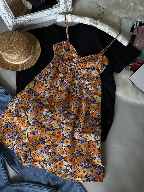 Легкий сарафан в цветочный принт на тоненьких бретелях Размер S-M Состояние нового,без дефектов