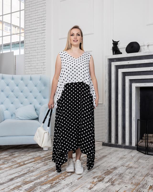 Розміри 50, 52, 54, 56, 58, 60 Тканина — штапель. Зріст моделі 165 см, розмір 50