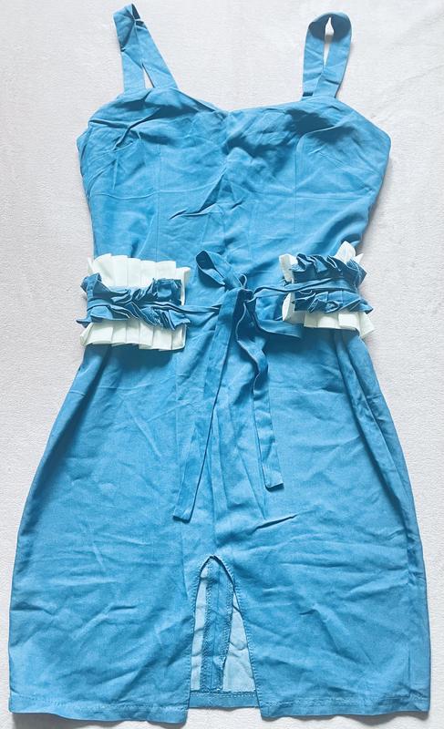 Голубой сарафан с красивым поясом, внизу разрез, сзади на молнии, без подкладки, но не просвечивает, с вытачками, красиво ложится по фигуре👗 Imogen Длина с бретелями - 92см, без - 78 ПОГ - 41 ПОТ - 39 ПОБ - 48