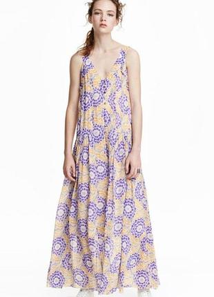 Красивый длинный сарафан H&M. Размер на бирке 34, можно на 34-36. На подкладке. Спереди застегивается на пуговицы. ПОГ 41 см ПОТ 42 см Бедра свободно Длина 146,5 см Состав: Вискоза