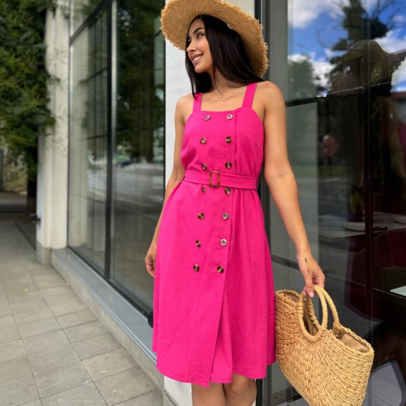 Сарафан льняной женский с поясом на пуговицах с широкими бретелями длина до колена прямой...