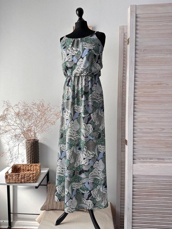 Сукня з принтом на брительках Only Размер - 36/S Ориентируйтесь на замеры Длина изделия - 143+5 см. брители регулируются Обхват грудей - 90+8 см. стрейч Обхват талии - 70+15 см. резинка Обхват стегон - 110 см. 100% полиэстер