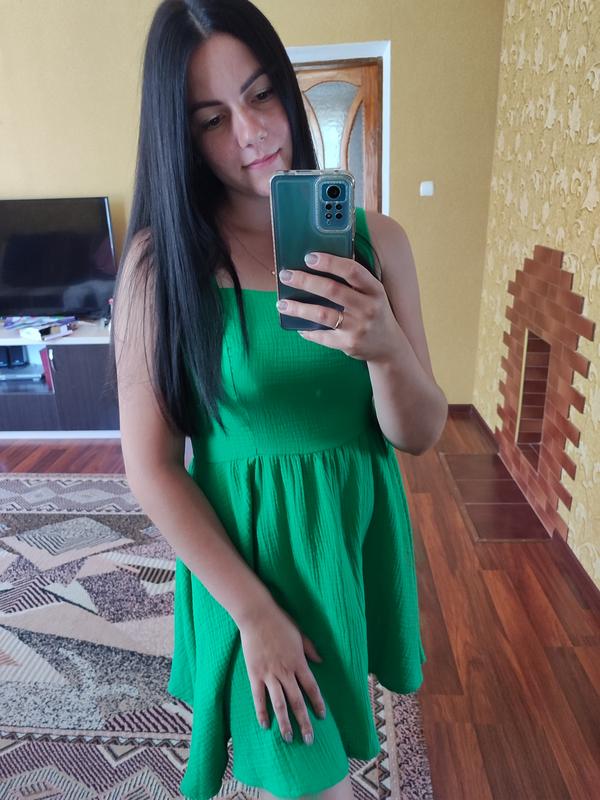 Платье муслиновое состояние идеальное, раз одела. Цвет - зеленый. Сзади замочек. Размер 48. По боках довше