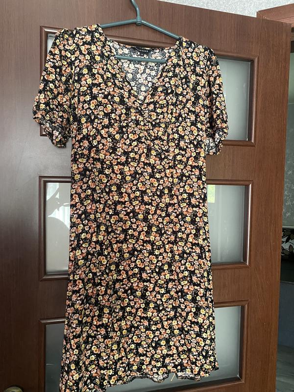 Красивое легкое летнее платье, цветочный принт. На груди стянута резинкой, которая красиво выделяет грудь. Сзади завязывается