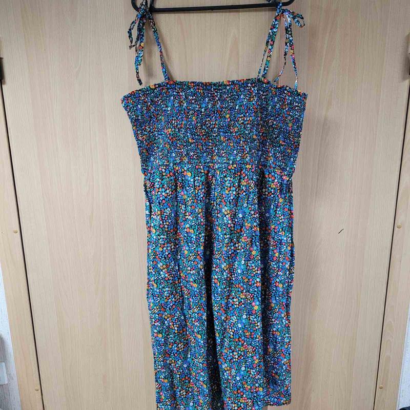 Х/б сарафан большого размера, верх прострочен мелкими резинками, лямки завязываются. Новый, без бумажной этикетки, люкс сток. Ог 102+, Об 152, длина 117+-.