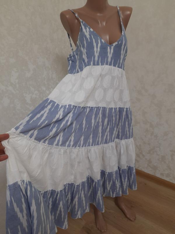 Шикарный коттоновый ярусный сарафан на тонкой бретели