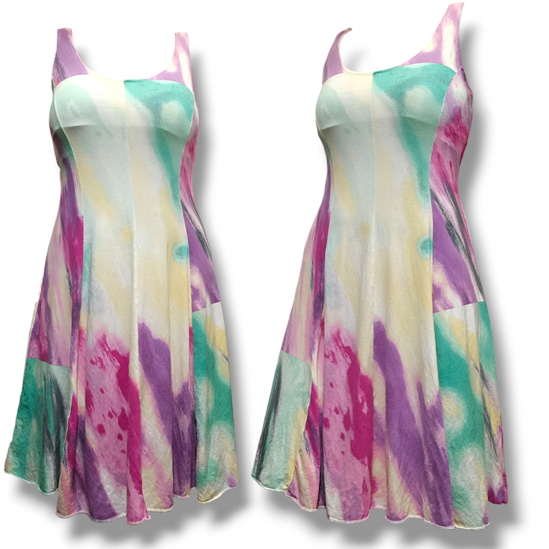 Длина общая 94 см, от горловины 74 см, ширина подмышек 39 см, талии 33 см. Ткань элестическая.