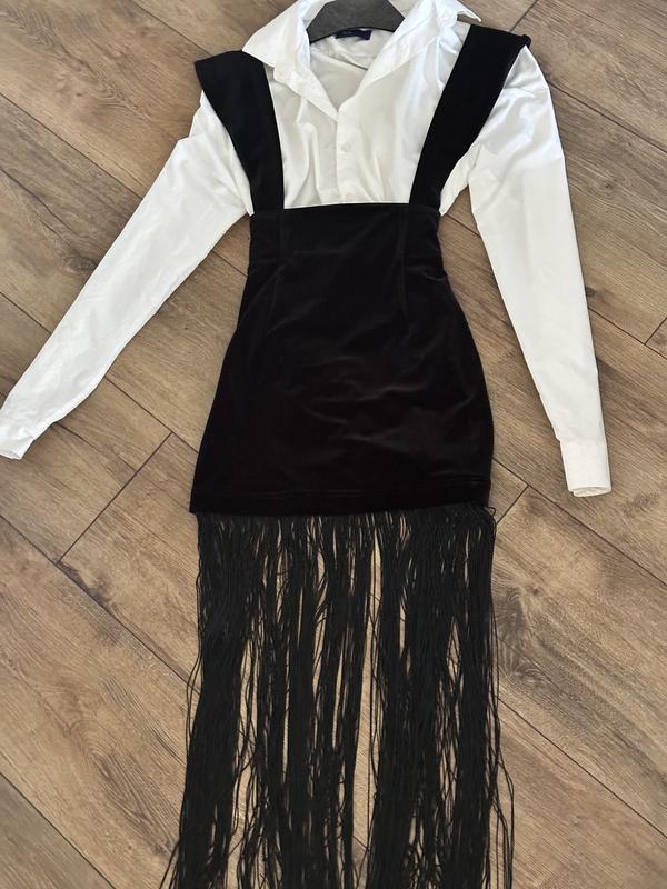 Сарафан черный велюрой с бахромой