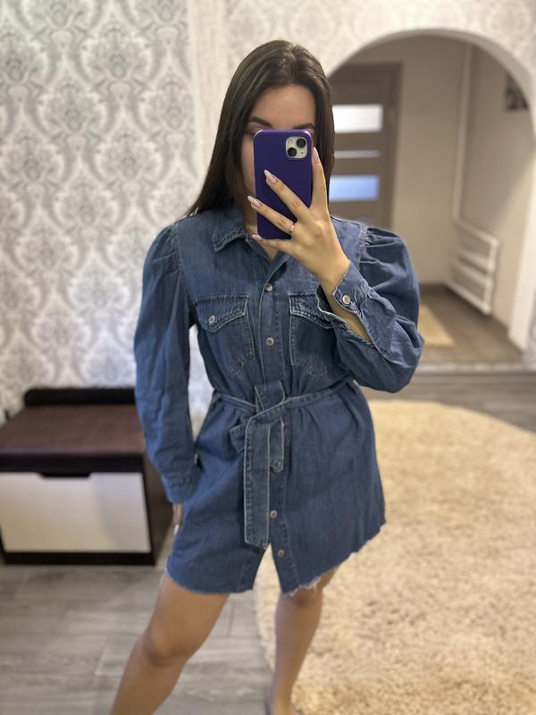 Джинсовый сарафан от Bershka, с очень красивыми рукавами, носить можно и без пояса
