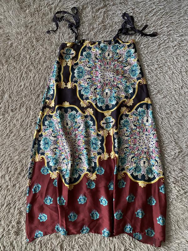 Платье сарафан миди Zara, из атласа бордового цвета с цветочным принтом