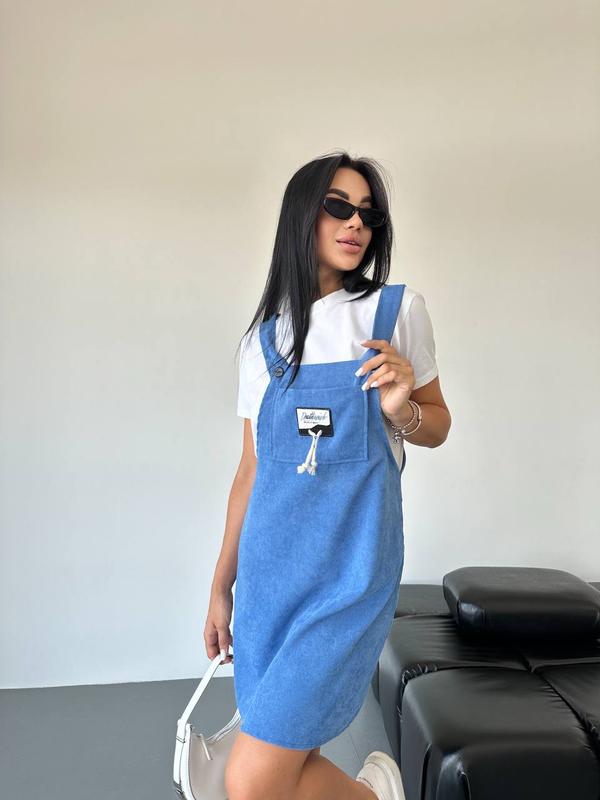 Модель 3001 Сарафан Размер: 42-44; 44-46 Тканина: вельвет Цвета: черный; графит; джинс Цена: 670 грн "Стильный сарафан из денима (вельвета). Легкая и удобная модель, которая идеально подходит для летнего сезона. Имеет классический крой с двумя широкими бретелями, которые застегиваются на пуговицы спереди. Центральный элемент декора - небольшая нашивка на груди с изящной веревочкой, придающая образу особое очарование. Носится с базовыми футболками или топами, создавая стильный и комфортный образ на каждый день." Б1432