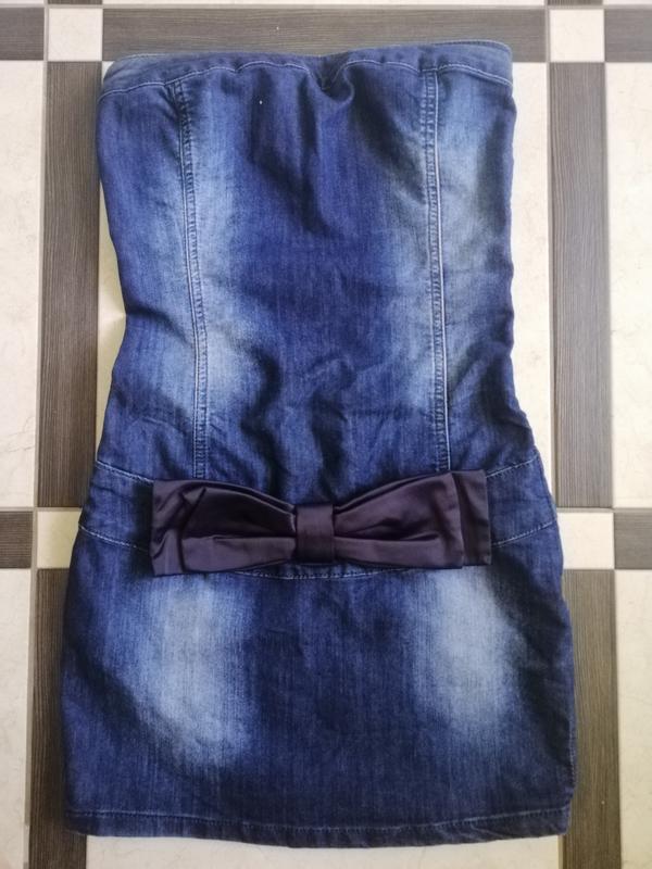 Стильний джинсовий сарафан без шлейок, з відкритою спинкою