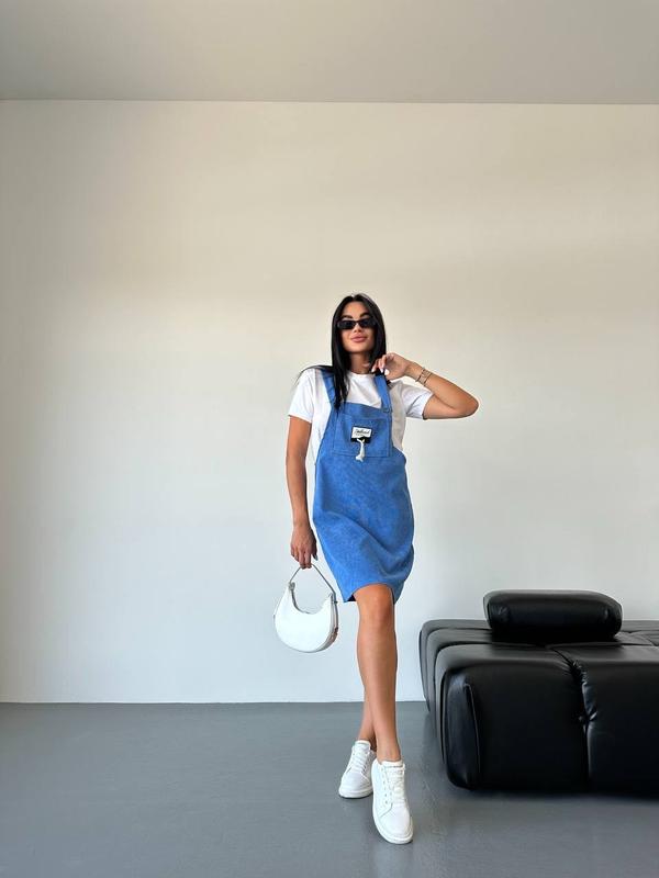 Модель sv 3001 Сарафан Размер: 42-44; 44-46 Тканина: вельвет Цвета: черный; графит; джинс Цена: 699 грн «Стильный сарафан из денима (вельвета). Легкая и удобная модель, которая идеально подходит для летнего сезона. Имеет классический крой с двумя широкими бретелями, которые застегиваются на пуговицы спереди. Центральный элемент декора - небольшая нашивка на груди с изящной веревочкой, придающая образу особое очарование. Носится с базовыми футболками или топами, создавая стильный и комфортный образ на каждый день.»