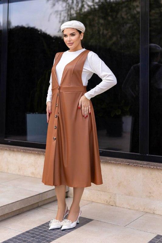 Двійка( сарафан+гольф тканина Сарафан з еко шкіри ,гольф трикотаж мустанг розміри 50-52,54-56,58-60 Кольори: рудий,чорний,баклажан Сарафан Довжина спідниці від талії :81см Довжина бретельки :39 см Обхват рукава: 56,60 ,64см Вимірювання готового виробу: 50-52 ОТ 110 ОБ 132 54-56 ОТ 120 ОБ 140 58-60 ОТ 130 ОБ 150 Гольф Довжина рукава 60 см Довжина виробу 63,64,65 см 50-52 ОГ 110/120 54-56 ОГ 120/130 58-60 ОГ 140/150 FD