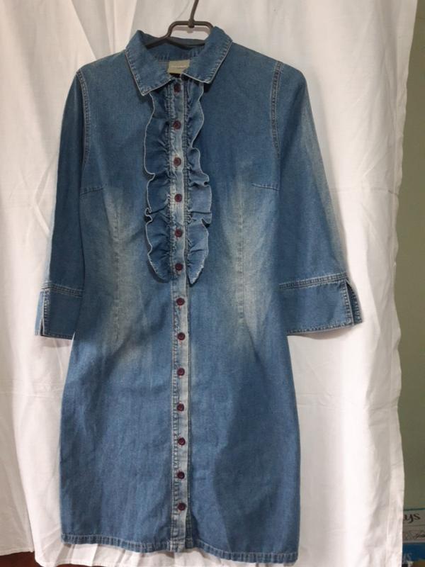 Джинсовое платье известного бренда в идеальном состоянии, размер М. Приталенный силуэт.В плечах 37 см. объем груди 90 см по талии 78 см в бедрах 98 см, длина рукава 3/4 - 50 см. Длина изделия - 97 см