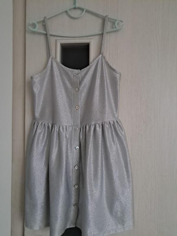 Абалдированный сарафан на пуговицах, бретельки не регулируются но хорошо держат, ткань красивая серебристая, переливается, по фигуре садится супер как на кукольке. Очень рекомендую! Размер 42 маленькая 44,на ПОГ 40.длина мини 76, не высокая девчонка.
