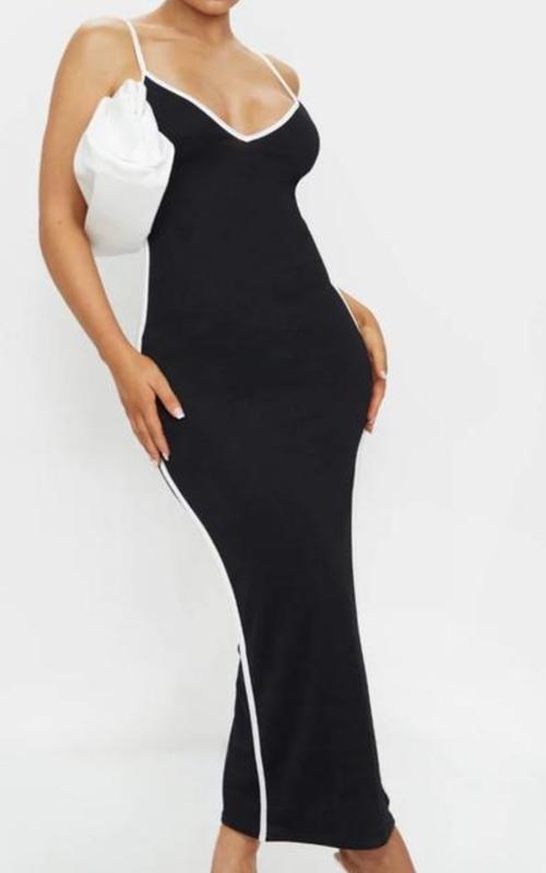 Черный трикотажный сарафан с белыми лампасами, в рубчик. ONLY, евр.42 , UK14, 95%cotton, 5%elastan. Длина 120 Красиво подчеркивает фигуру! На евр. 44 будет выглядеть как на фото с сайта. На евр. 42 более прямое, вышлю фото на себе.