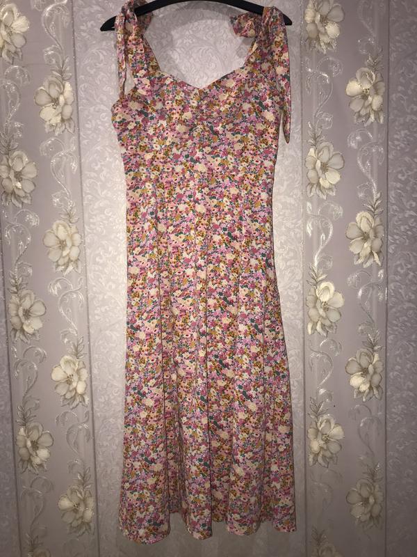 Нежный очень женский сарафан На завязках которые регулируются На размер s/m Стан замечательный С безопасной оплатой не работаю все вопросы в личные смс