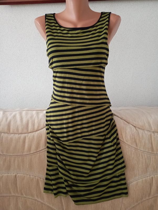 Очень удобный трикотажный сарафан черно-оливкового цвета, S, замеры на фото