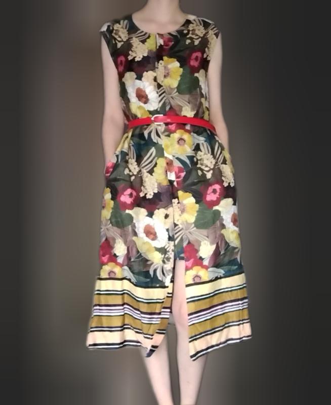 Легкий вискозный сарафан - платье. Общее состояние идеальное, но отрезанное тканый пояс, спереди остались две дырочки с металлическими кольцами. По желанию можно пришить новые ленты, или одеть под пояс. (пояс на фото не продается). Бирка на размер М можно на S