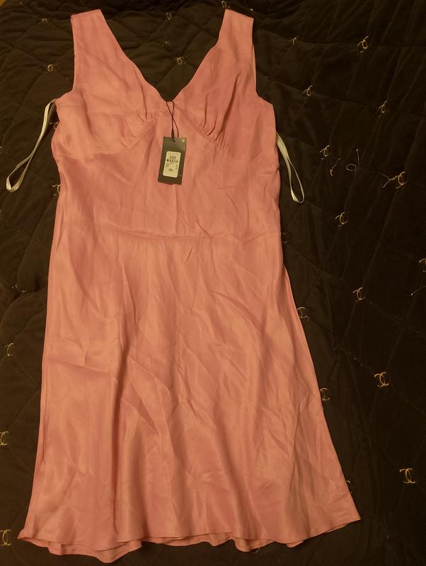 Primark сарафан, новий, розмір вказано 12/40, склад віскоза та район(штучний шовк), дуже класна до тіла тканина. Без нюансів. Довжина 93 Напівобхват грудей 42 Напівобхват по талії 43 приблизно Напівобхват по стегнах 53 приблизно