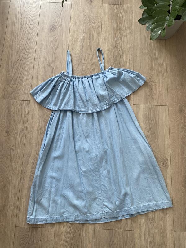 Сарафан з відкритими плечима вільного крою. Може вдягатись як зі спадаючими плечима, так і просто на брителях. Має кишеньки