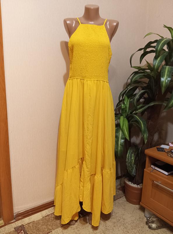 Новый сарафан, современного кроя, красивый желтый цвет. Низ пошитий клинами. От фирмы SHEIN. ПОГ-45см тянется до 50см ПОТ-40см тянется до 60см Длина -140см Низ свободного кроя.
