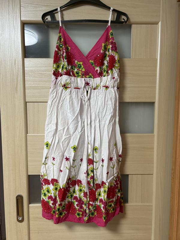 Летний сарафан в шикарные цветы,есть пояс ,бретели регулируется,длина без бретелей на фото
