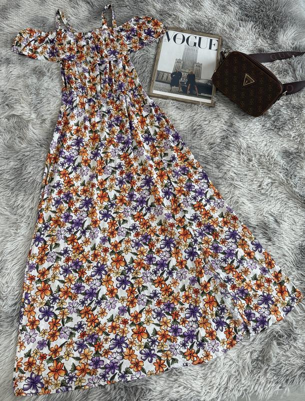 Красивый натуральный сарафан, размер срезанный, подходит XXS/ XS 100% вискоза Длина 124 см Поб 53 см Пог 42 см