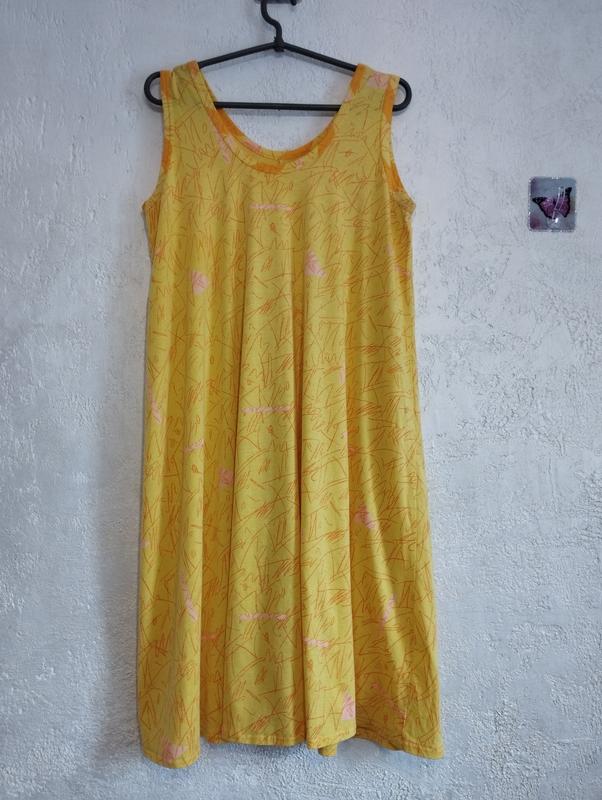 О товаре Стан секонд-хенд Размер 3XL, 4XL Яркий летний сарафан большой размер ориентируйтесь на замеры от груди идет трапецией сильно расширяется красиво как и для беременных так и для пышных форм. Полуфат груди 56см Полуфат талии 70см Полуофат низа изделия 110см Пройма рукава 25 см Плече 7 см длина 103 см. Смотрите другие Мои лоты Бирок на изделии нет кроме фото 4 Состояние новой вещи.