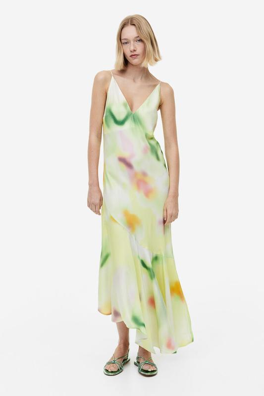 Яркий асимметричный сатиновый сарафан вискоза Яскравий сатиновий сарафан скромний на косу лінію, тож гарно сідає на фігуру і тягнеться Заміри: пог 43, талія 36, стегна 51, довжина 106/137