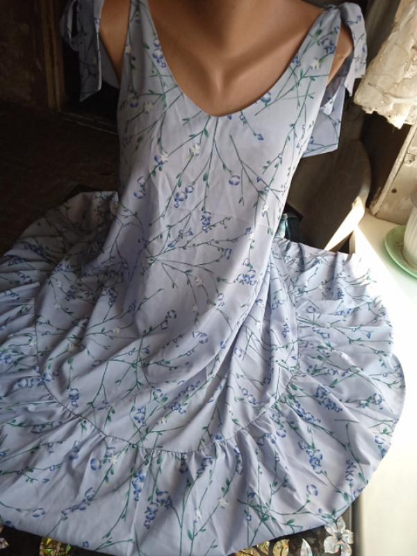 сарафан,в идеальном состоянии, очень тонкая и легкая ткань, нежно- голубого цвета,размер S,M,L.(см.замеры).