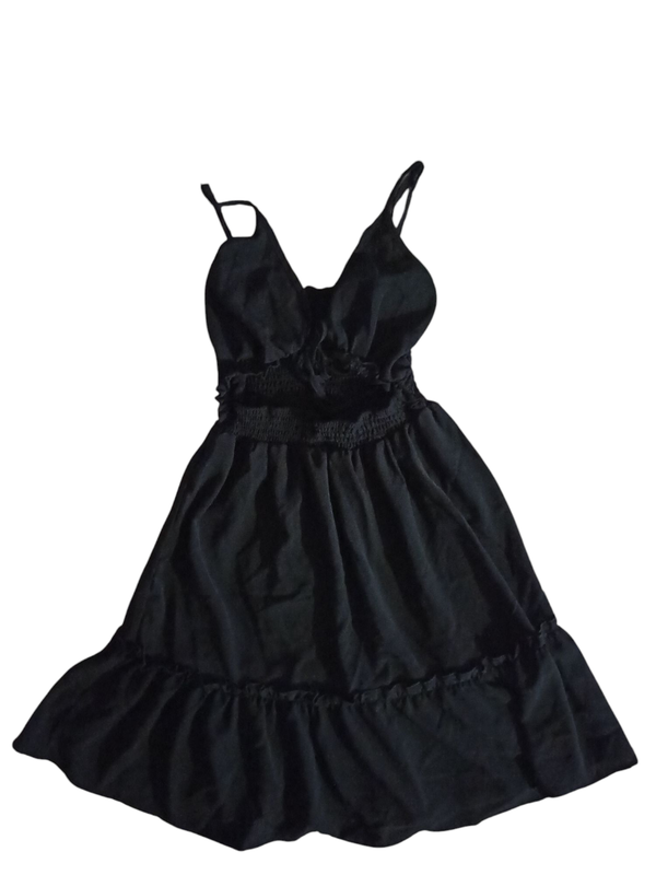 Сарафан черного цвета в очень хорошем состоянии. Размер 44. На животе есть вырез. На спинке резинка. Длина платья - 82 см. Подходит на объем груди где-то на 86 см.