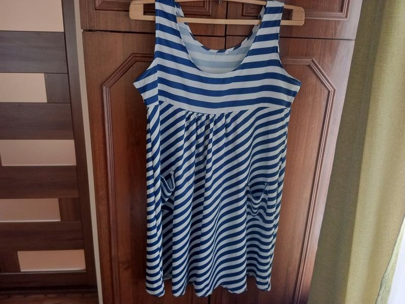 Летний сарафан в полоску подойдут на размер 50-52, длина 95 см, отрезной от плеча до линии отреза 30 см, спереди 2 кармана.Стан новый.