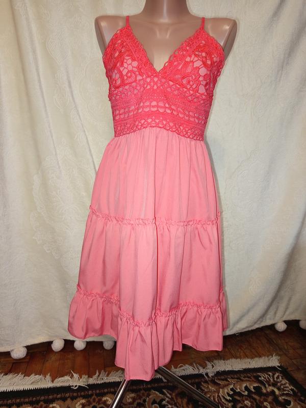 Невероятно красивый сарафан с кружным верхом и открытой спинкой Длина - 89см (бретельки регулируются)