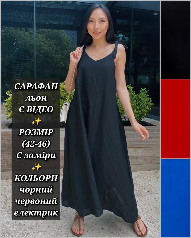 Сарафан Мод-337 Тканина-льон тур. Цвета-черный, красный, электрик Размер-универсальный (42-46) Летний сарафан 👗свободного кроя с регулируемыми завязками, выполнен из натуральной ткани. Идеальный выбор для любителей красоты и комфорта💃❤️ Есть видео обзор Есть замеры