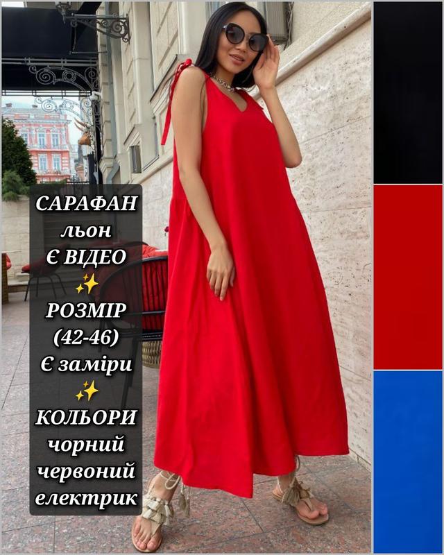 Сарафан Мод-337 Тканина-льон тур. Цвета-черный, красный, электрик Размер-универсальный (42-46) Летний сарафан 👗свободного кроя с регулируемыми завязками, выполнен из натуральной ткани. Идеальный выбор для любителей красоты и комфорта💃❤️ Есть видео обзор Есть замеры Перед оформлением заказа обязательно ознакомьтесь с разделом "Про меня" на странице магазина или уточняйте все детали в личных уведомлениях. Нажимайте кнопку "Подписаться", чтобы не пропустить новинки, выгодные акции и распродажи!