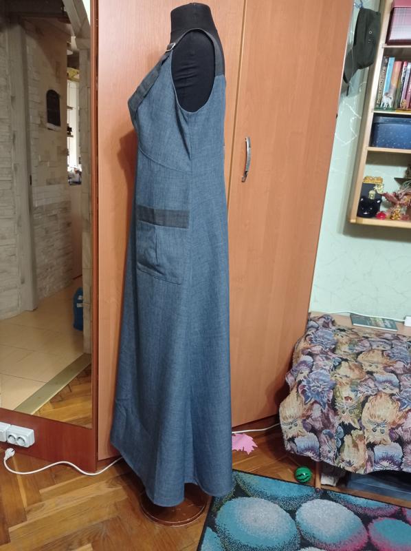Летний, длинный сарафан в очень хорошем состоянии. Ткань легкая, не тянется, лямки можно регулировать, карманы по переду, застегивается молнией (хотя я ею не держалась, крой свободный, одевала так). Красиво садится по фигуре (манекен, к сожалению, у меня 34 размера, поэтому да). Цвет - синий с серым, имитация джинса, юбка трапеция. Размер 52, смотрите замеры: Длина - 141см (максимально); ПОГ - 52см; ПОТ - 49см; ПО по стегнах - 66см. Фото выполнено на манекене 34 размера, и принимайте это во внимание. Можете выбрать к покупке себе подарок (лоты "Подарок"), смотрите Мои объявления. Возвращение или обмен нет, пожалуйста, обдумывайте, делайте покупку. Оплата і доставка: Оплата на карту ПриватБанк Ощадбанк - 100% Если пользуетесь "Беспечная оплата" (через Шкаф),роны в 3 раза внимательно продумывать покупку, задавать вопросы,брите фото, чтобы не поворачивать, обязаная продавца оплачивать доставку вам и назад, давайте уважать друг друга! Открытка по Новой почте, Justin, и Укрпошту. Пересласка за счет покупателя.