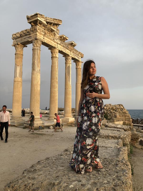 Чудовий сарафан на літо, тканина дуже приємна, схожа на шлак, довжина 148, у талії 37, у грудях 47, розмір L