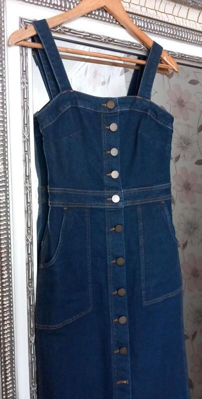 Коттоновый джинсовый сарафан, материал тянется по фигуре.